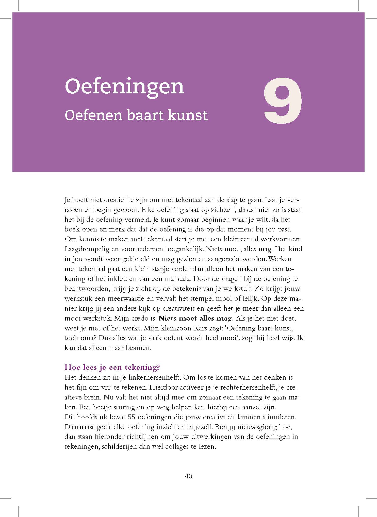 Het boek bevat voorbeelden, verschillende technieken, materialen en werkvormen. 55 oefeningen om direct aan de slag te gaan.