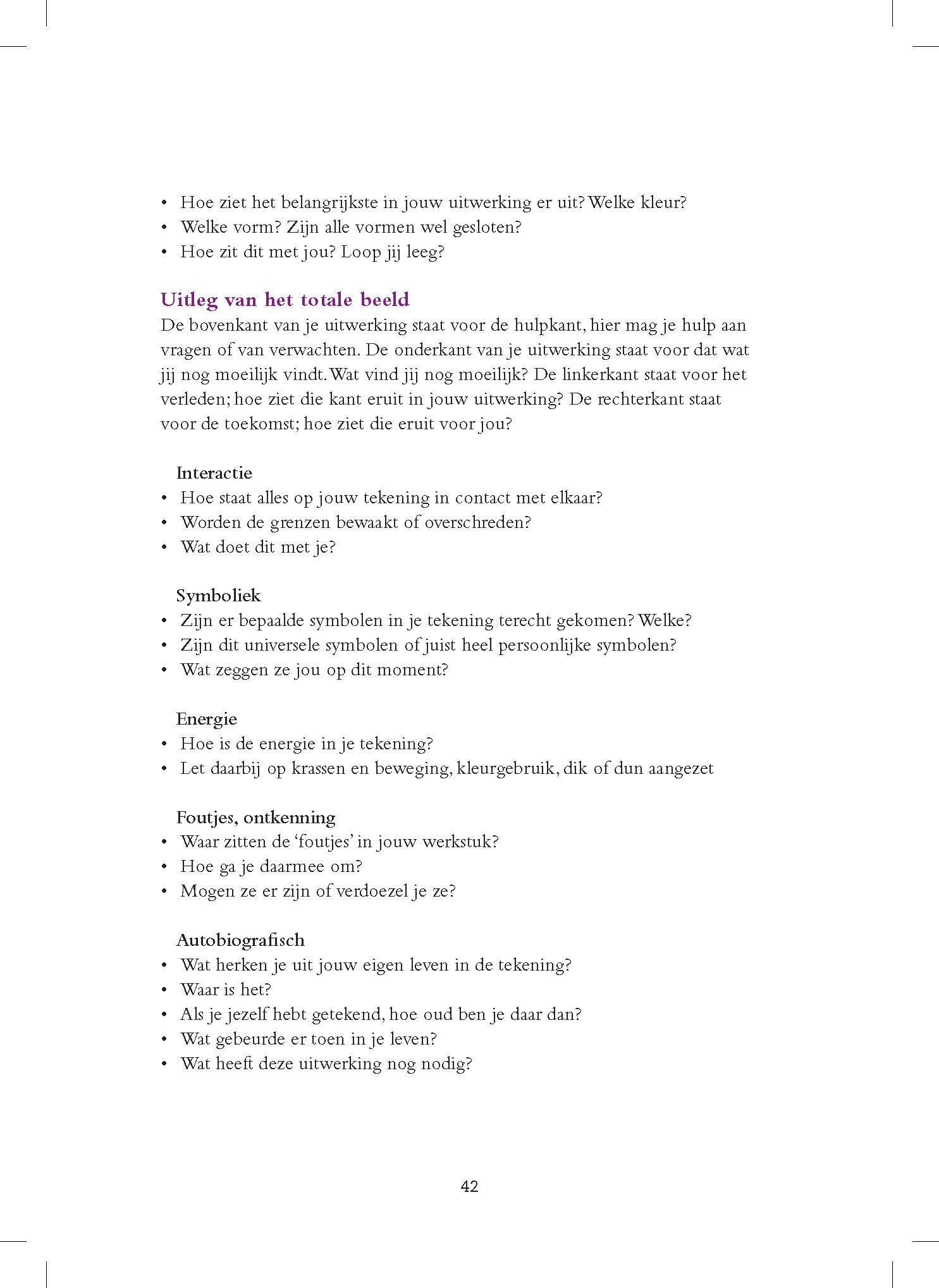 De vragen bij de oefeningen in dit boek laten je met andere ogen naar je eigen tekening kijken. Alles wat je tekent, zegt namelijk iets over jezelf. Tekentaal helpt je om op een ongedwongen manier uitdrukking te geven aan je emoties, zonder woorden te gebruiken. Tekenen, schilderen en collages maken, geven ontspanning, rust en uiteindelijk meer zelfinzicht. Ontdek de kracht van tekentaal en word je bewust van datgene wat in jou leeft.